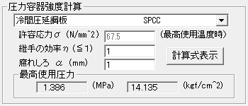 最高使用圧力の計算するのに使用した計算式を表示させることが出来ます。 リファレンスとして使用出来ます。