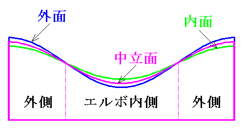 厚肉の場合は円筒の内面、外面、中立面のどれが接続面に接するかで展開図の高さが異なってきます。 今回は無加工で展開図の高さを調整して薄肉と出口寸法と合わせる手法を例に、厚肉の展開図の種類についてお話させていただきます。